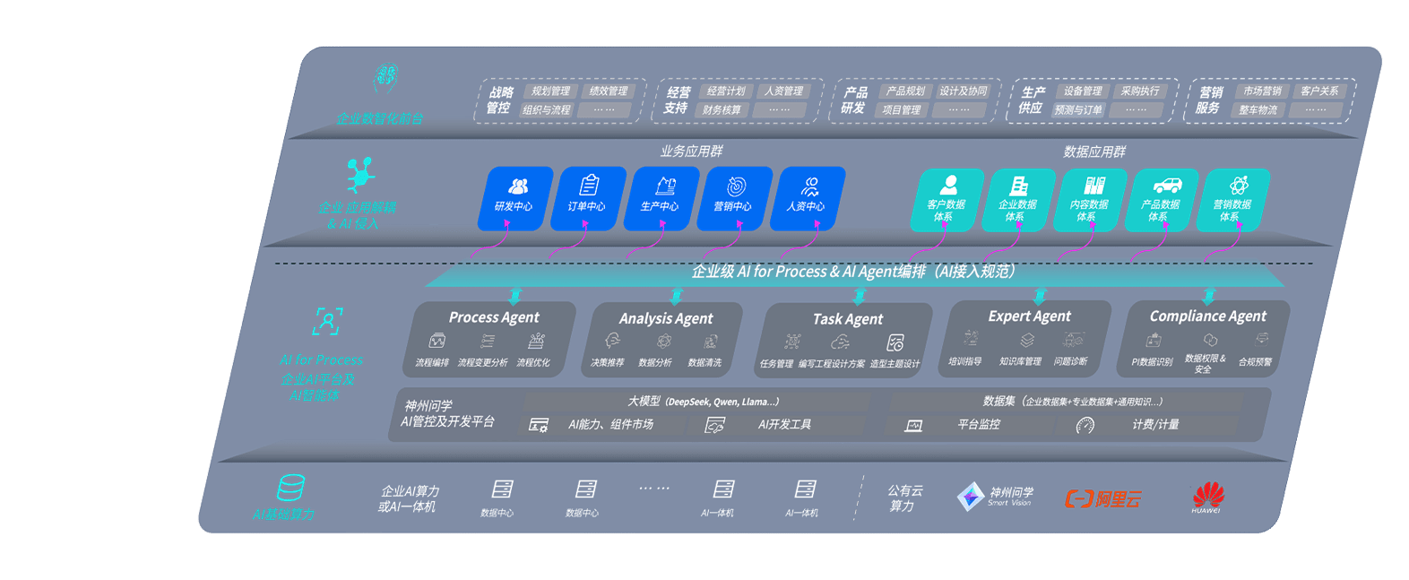 新时代问学智车解决方案是一套基于AI技术的汽车行业智能化系统,,,覆盖从底层算力到顶层AI应用的全栈方案。。方案由算力层、、模型层和应用层组成:算力层,,,,方案支持多种一体机配置,,,具备云端灵活部署、、、多云适配以及动态优化计算资源的能力;模型层,,,新时代问学平台版提供了企业级AI应用一站式构建与管理平台,,支持基于后训练强化技术的汽车企业专属模型的训练、、、评测和运营;应用层,,新时代问学DeepSeek版提供包括超级员工、、、智能招采、、智能营销、、智能客服、、、AI for BI等一系列解决方案,,可助力汽车行业实现数字化转型,,,让管理更智能、、、响应更敏捷。。。。
